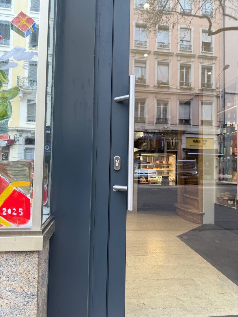 Nous avons remplace la porte d entree de la boucherie a Lyon 8 rue chevreul 69008 l art de l’excellence